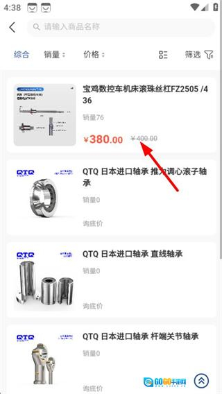 2. 在配件商城界面,点击动力传动类别,进入相应商品列表界面。