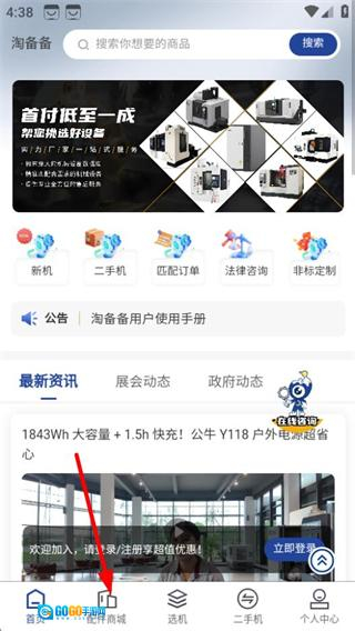 1. 于淘备备首页,轻点底部的配件商城,即可进入配件商城页面。