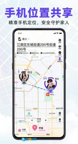 借助手机GPS实现位置共享功能,系统能够智能判别停留地点与停留时长,用户可随时查看家人的实时位置信息。