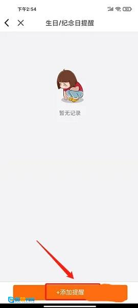 来到生日或纪念日提醒页面,点击“添加提醒”按钮。