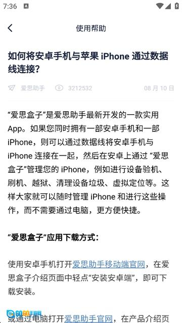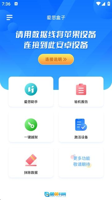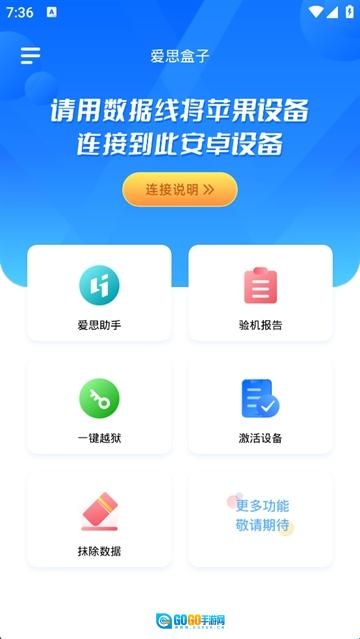 爱思盒子是一款专门针对安卓用户打造的手机助手类软件。借助该软件里的“Android手机”,用户能够对自己的iPhone进行管理,像查看设备详细信息、查阅验机报告以及一键越狱等操作都能实现。同时,软件还提供了各式各样实用的工具与功能,其目的在于助力用户对手机系统进行管理与优化。