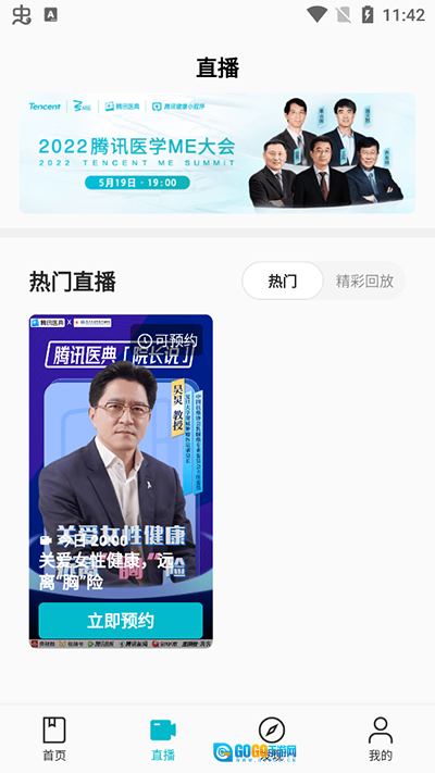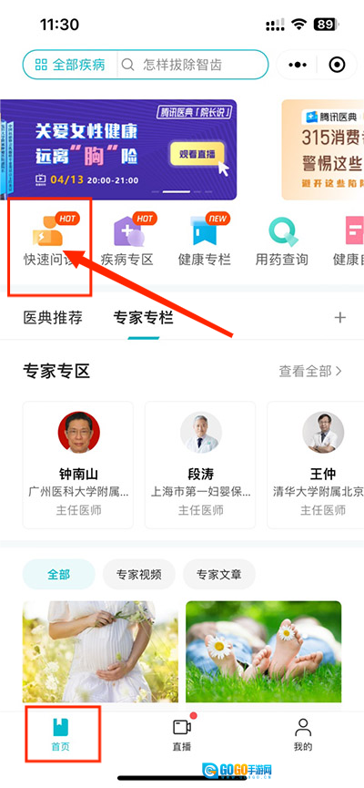 2. 点击底部“直播”,每天都有专业医生进行线上直播。