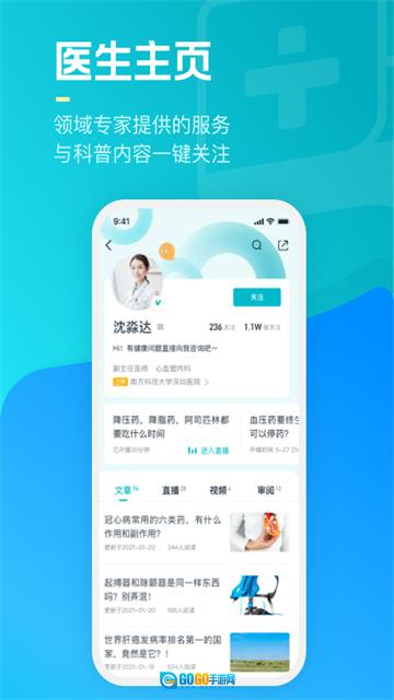 用户在此平台,能够快速查询各类自己关心的医疗知识。软件提供疾病概述、科普文章、专家视频、知识问答、急救指导,以及患者交流社区等服务。此外,日常保健、饮食健康、母婴育儿等方面的科普文章也可在此查看。