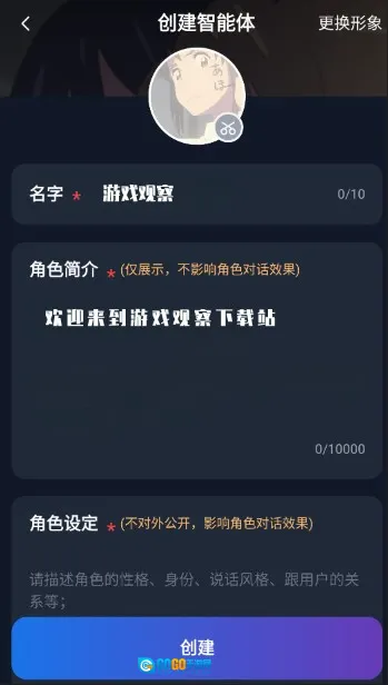 5、为使他人能更便捷地了解该人物角色,还能够自行输入名字、角色简介以及相关设定等内容。