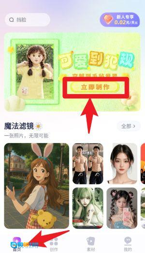 1. 在首页点击“立即制作”,能迅速进入创作流程,还可挑选心仪的魔法滤镜效果应用到照片上。