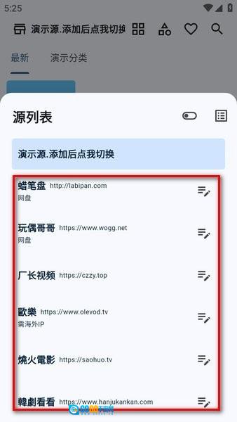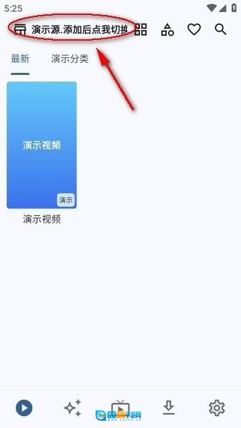 4、添加成功后,返回首页,点击“演示源.添加后点我切换”。