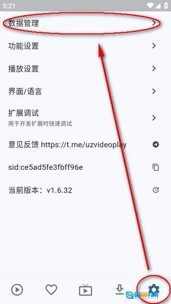 1. 打开uz影视,接着点击右下角的设置,然后点击“数据管理”。