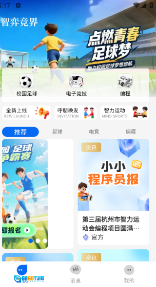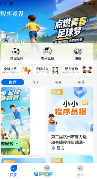 2. 于首页便能瞧见校园足球、电子竞技、编程等类别。