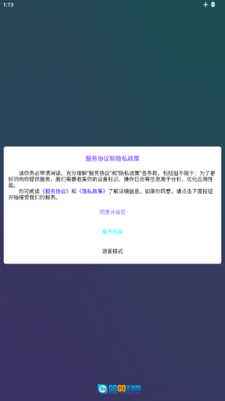 1、安装后打开软件,提示同意与否,点击同意进入;