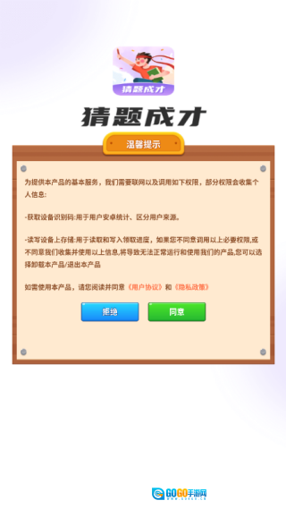 1、安装后打开软件,提示同意与否,点击同意进入;