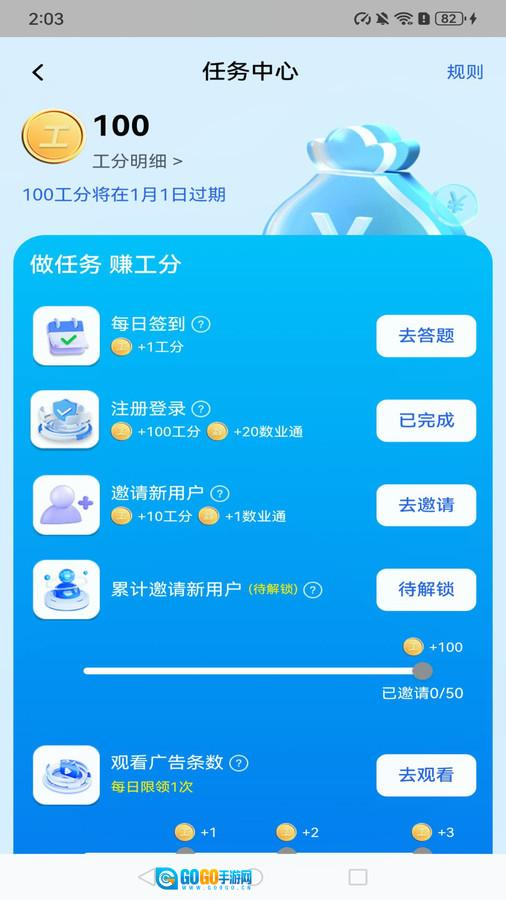 3、此外,每日签到、邀请新用户、观看广告等任务也能赚取工分,这些任务参与起来及时又高效。