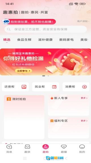 趣惠拍,作为一款优质的电商购物平台,在线商品种类极为丰富,让你网购能省下不少钱。无论何时,你都可以在平台上搜索自己需要的热门产品。这是一个灵活又高效的购物平台,广大热衷于网购的用户大可放心搜索。不仅下单优惠力度大,平台还经常举办各类秒杀购物活动,快来随时参与抢购吧。
