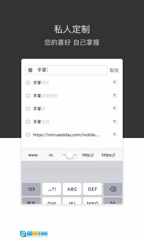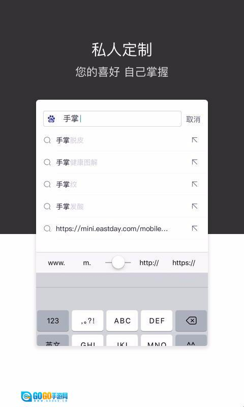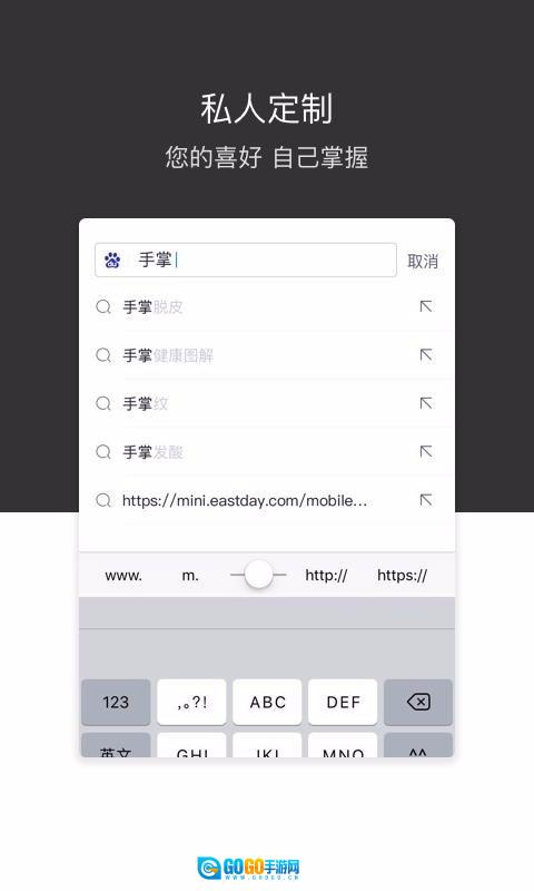1、进行搜索时,只需输入网址或者需要搜索内容的关键词,即可实现快速搜索。