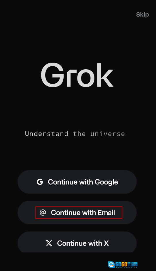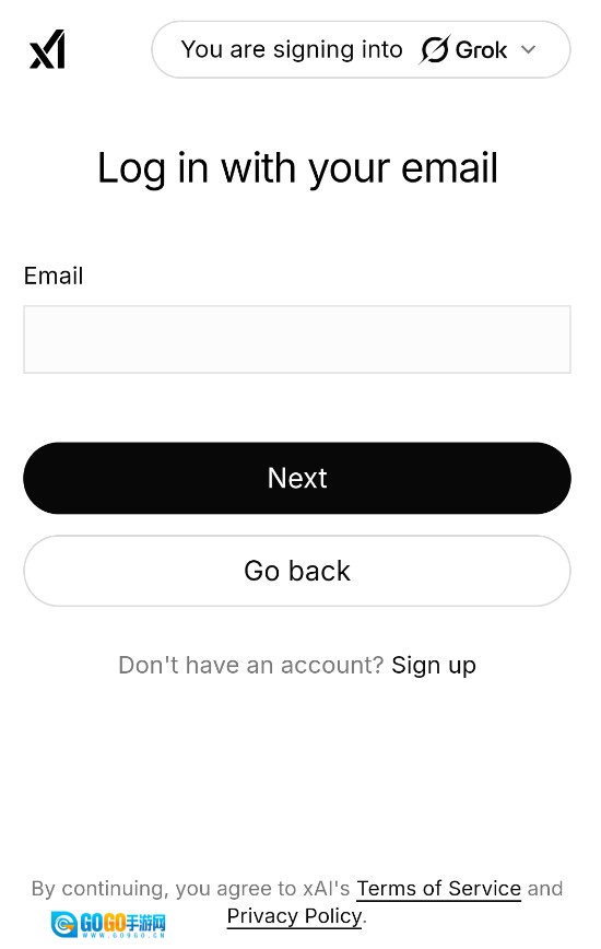 1、安装grok并打开后,首次使用需先进行登录注册。