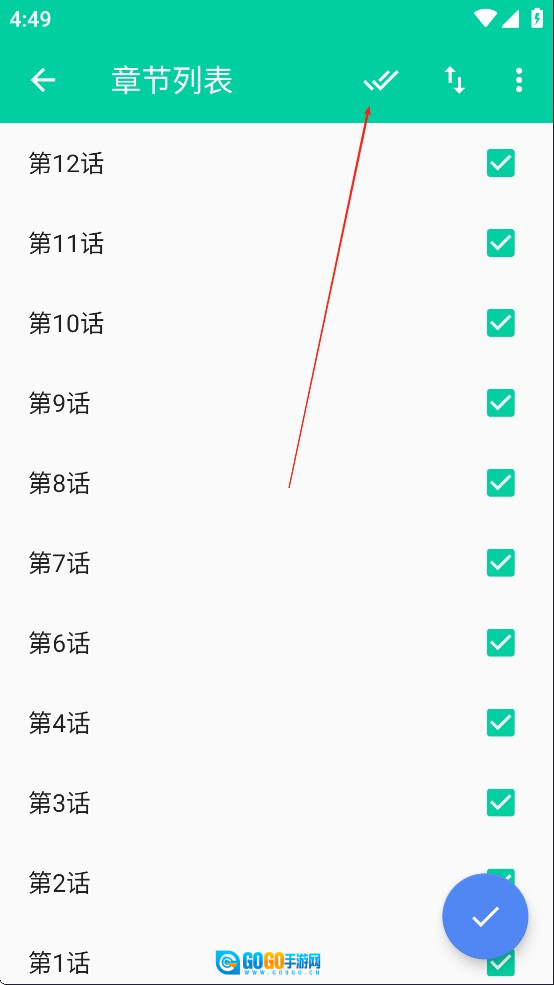 选择要的话数,点击下图按钮可以全选