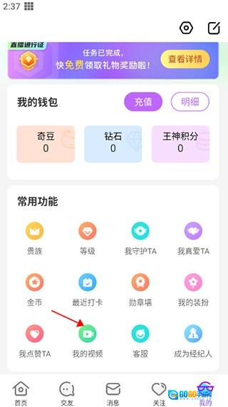 1、安装奇秀直播,打开后进入首页,点击【我的】。
