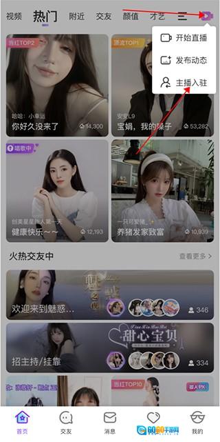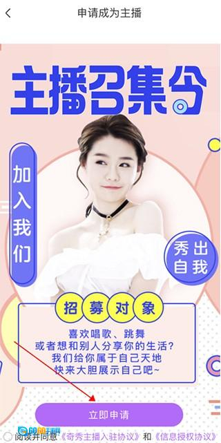 1、进入奇秀直播,点击右上角【主播入驻】。