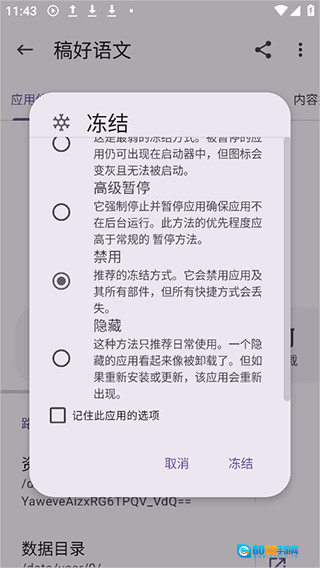 1. 在已获取root权限的设备上开启组件管理功能,选中需要冻结的应用服务进程,点击确认后,这些组件便会停止消耗电池资源。