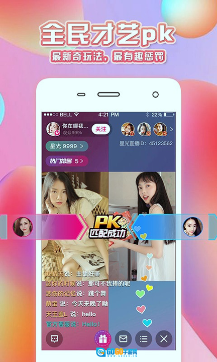 4、全民聊天:随时随地,一键轻松开启直播聊天。