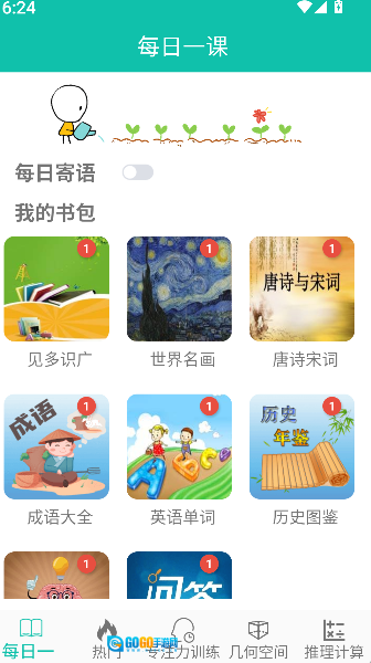 参与各类几何问题的回答,同样能够提升用户的空间思维能力。除此之外,这款软件具备多项重点学习功能,像对成语进行全面收集、涵盖唐宋诗歌内容、收纳英语单词以及设置知识测验等,助力用户丰富自身的知识储备。