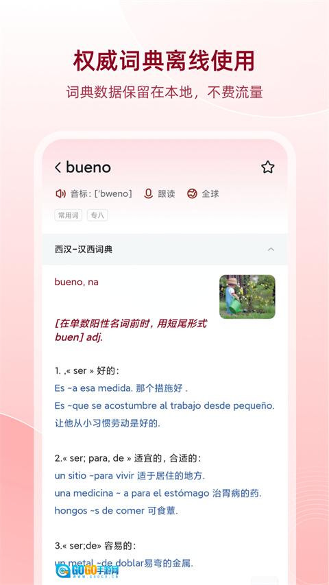 4. 具备全西班牙语句子翻译及发音功能,同时支持通过语音输入进行查询。