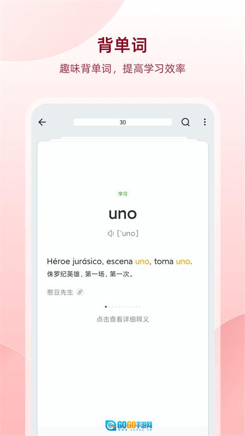 3. 每日一句西班牙语,不仅配有真人朗读,还有详细讲解,在日积月累中逐步学习词汇。