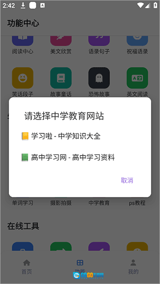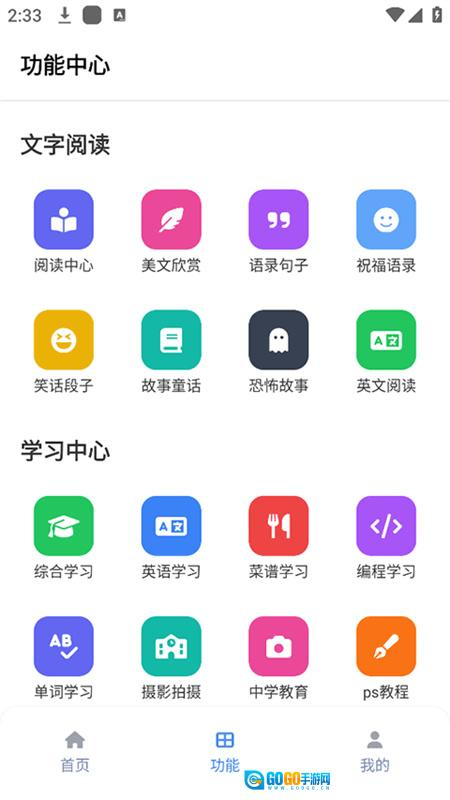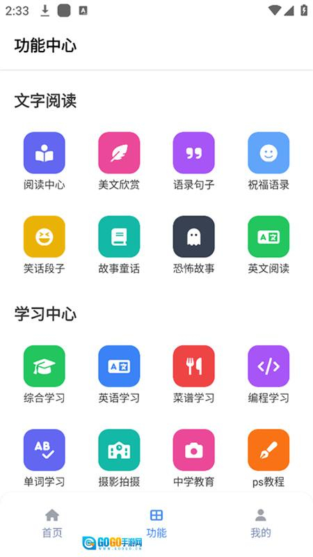 3、学习中心:综合学习、英语学习、菜谱学习...