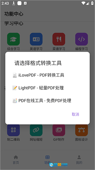 效率工具涵盖格式转换、制图配色、二维码生成、GIF制作等功能,助力提升工作效率。