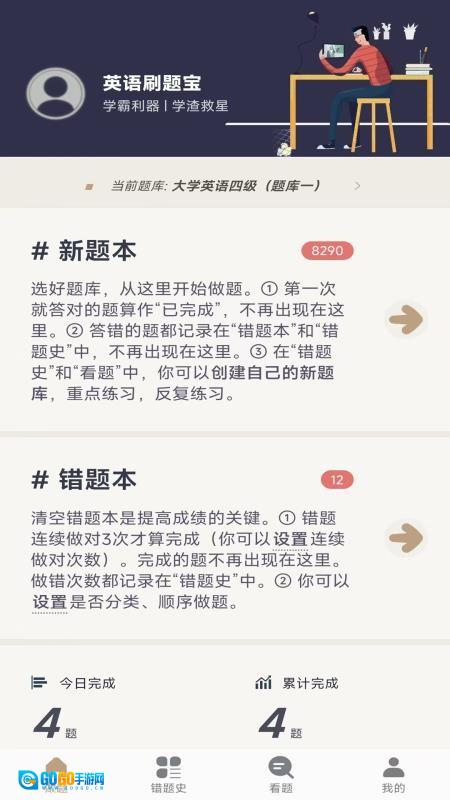 英语刷题宝是一款专注于英语题库培训的学习软件,它的关键特色在于运用科学的实践题管理机制。