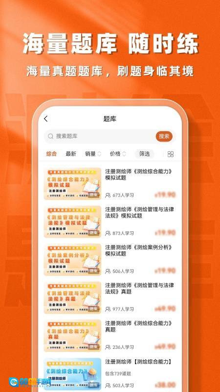 测绘工程师题库帮,这是一款专注于办公学习领域的软件。它是专门为测绘工程师考试量身打造的专业学习辅助利器,其核心目的在于助力用户顺利通过考试,获取相关证书。在这款软件里,用户能够依据自身的学习进度和实际需求,灵活挑选不同内容展开学习。软件内容丰富多样,覆盖面极为广泛,无论是学习基础内容的新手小白,还是想要挑战更高难度的进阶学习者,都能在其中找到适合自己的学习路径,循序渐进地提升知识水平。此外,软件还配备了视频讲解功能,用户通过观看视频,能够更加深入、透彻地理解知识内容。