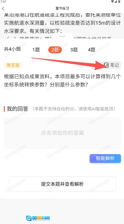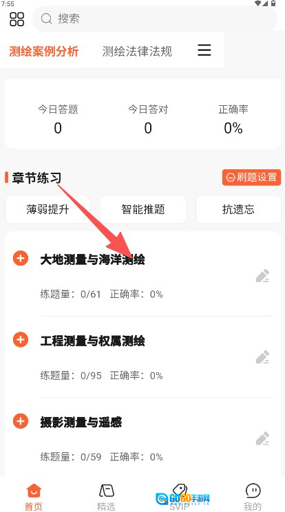 1. 于首页的“章节练习”模块里,挑选“大地测量与海洋测绘”科目并进入。