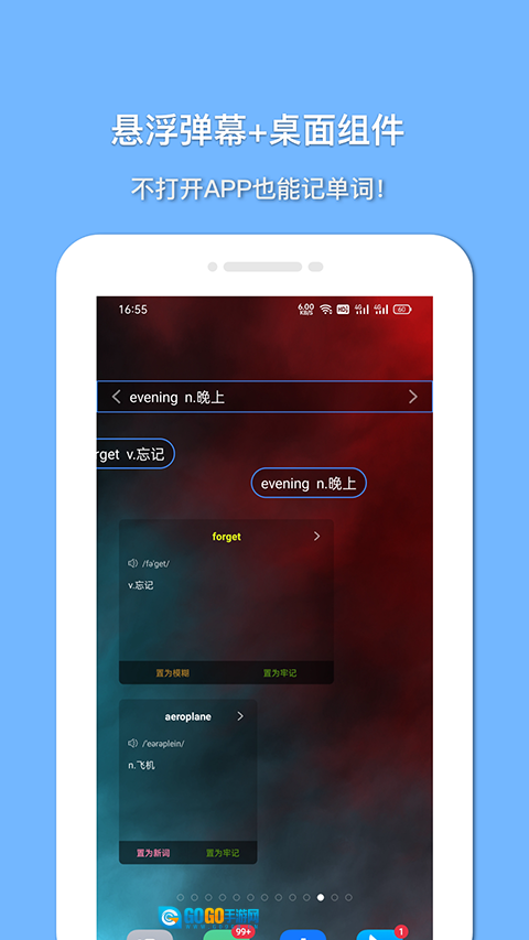 1. 该软件运用了一种别具一格的浮动弹幕形式,使您在手机上进行各类操作时都能够记住单词。