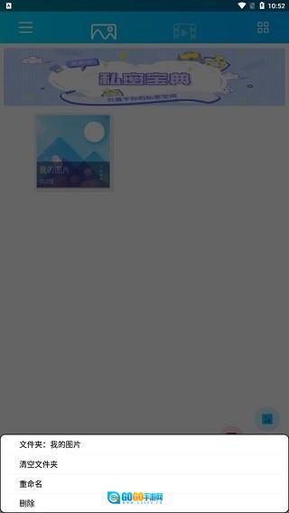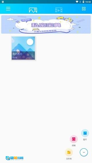 3、完成上述设置后,即可正式投入使用。如图片所示,此处设有图片与视频的私密添加设置。点击下方的“+”,就能选择要添加的照片或视频。此外,文件夹功能支持自定义图片分类名称。