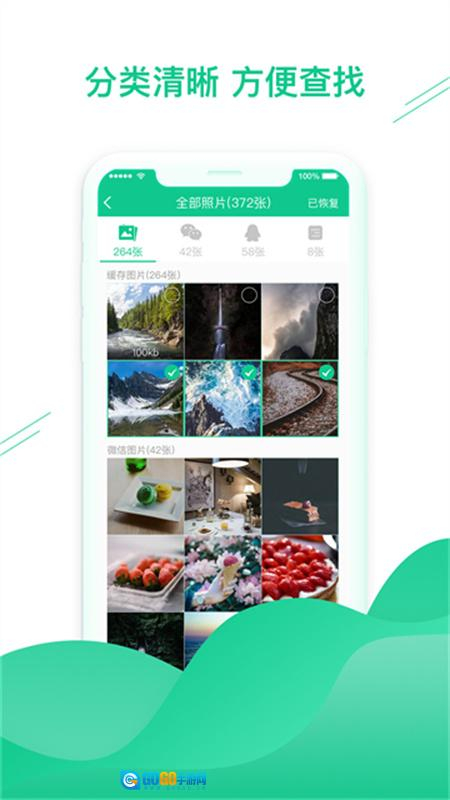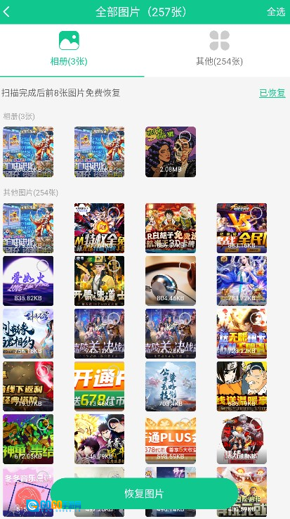 2. 图片恢复:涵盖照片恢复、缓存照片恢复、微信聊天图片恢复以及QQ图片恢复等。