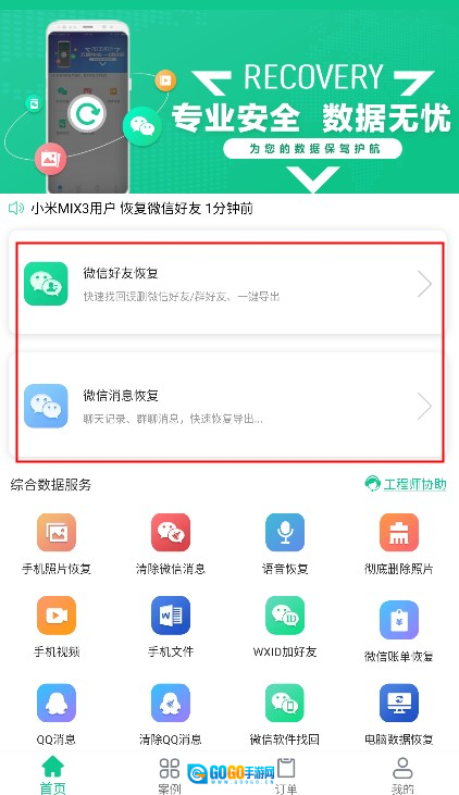 1、微信相关恢复:涵盖微信聊天记录恢复、微信好友恢复、微信照片恢复以及文件恢复等。