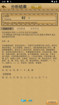 3、提供个人取名服务,进行姓名分析,开展公司名剖析工作,还提供号码预测服务。
