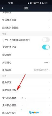 4、进入系统设置后,向下滚动至其他分类板块,从中找到“游戏信息授权”选项。