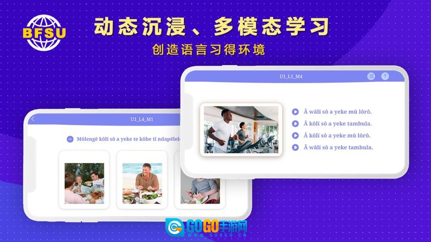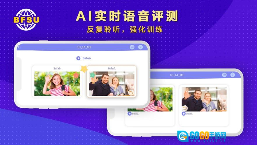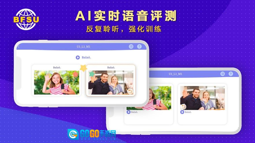 3、借助母语者标准音频、文字以及真实情境照片,在十余种课件模板里助力学生搭建语言网络。