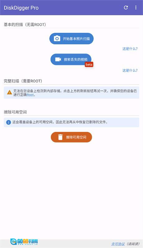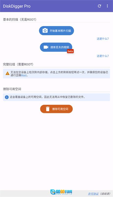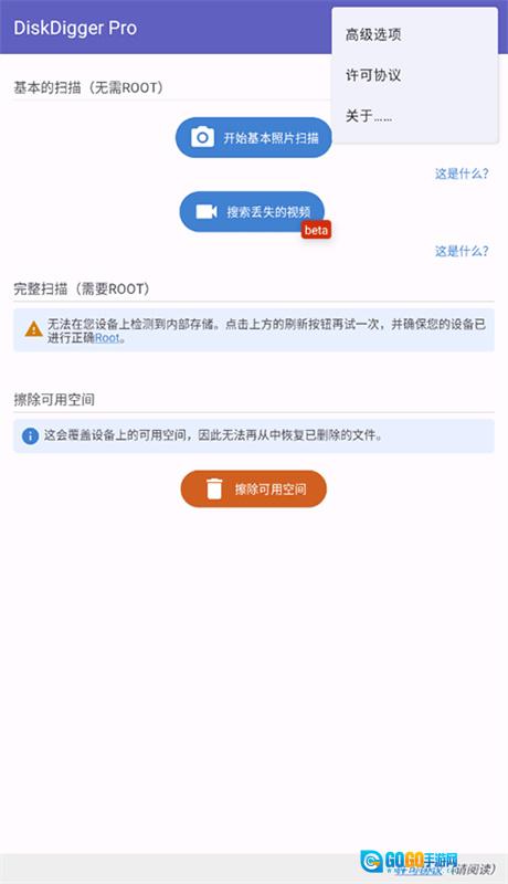 1. 开启DiskDigger Pro免费版本,进入应用的主界面,挑选开始基本照片扫描这一选项。
