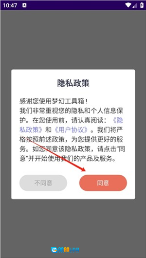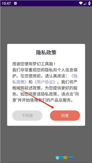1. 用户开启并进入软件后,点击同意隐私协议。