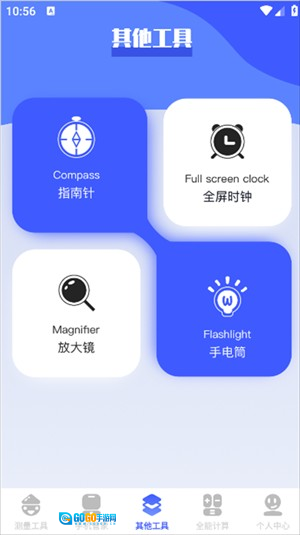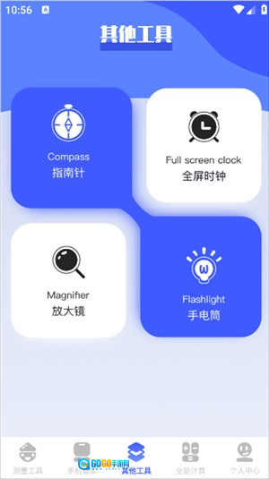 3、此外,在其他工具页面,还配备了指南针、时钟、放大镜、手电筒等一系列功能。