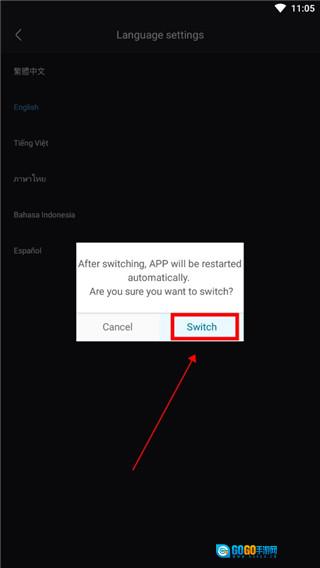 6.当App弹出选项时,点击右侧的【Switch】进行切换,随后等待App重新启动,如此便完成设置。