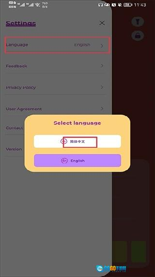 1. 开启iSoftBox,其初始呈现英文界面。点击左上角的菜单,随后点击“language”,将界面切换为简体中文。