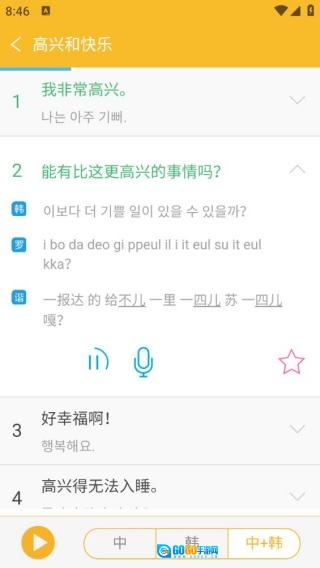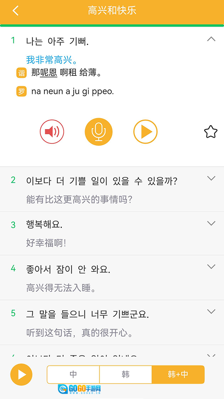 4、点击你想要表达的语句,会提供详细的韩语发音音效,助力你更轻松地学习。