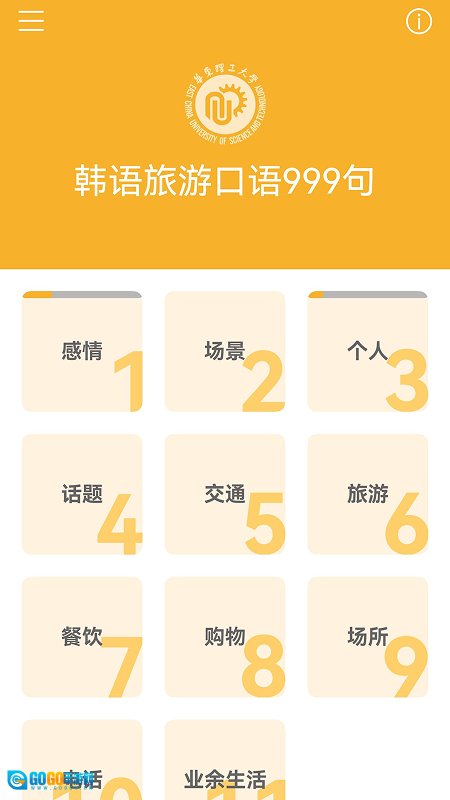 2、主界面提供了不同场景的韩语句子,直接点击即可解锁查看并学习。