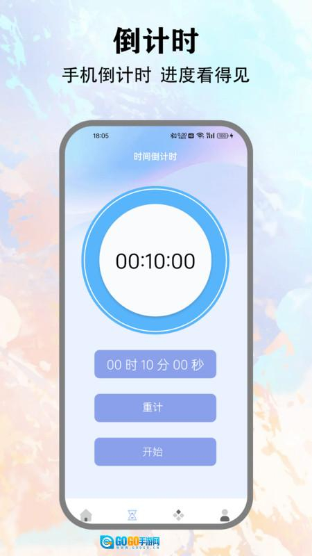 2. 拥有倒计时功能,能直观呈现时间进度,用户可自行设定时长,且能随时启动或重置。