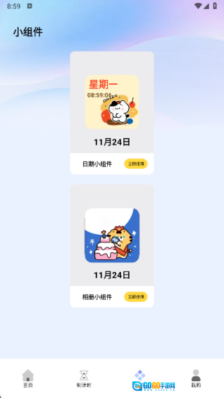 3、在组件页面中有日期小组件和相册小组件的功能;