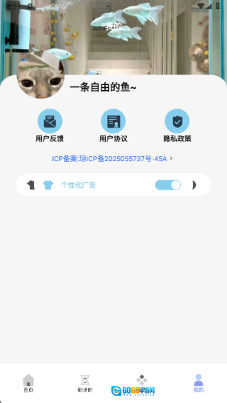4、我的页面包含用户协议、个性化广告等信息。