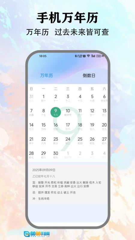 1. 具备万年历功能,可实现公历与农历的对照,同时包含黄历宜忌、节气节日等各类信息,为用户查询日期提供便利。