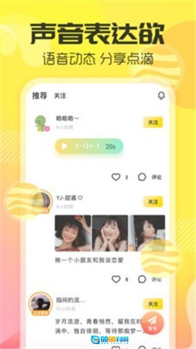 1. 麦序K歌娱乐功能:能够在频道里采用麦序模式进行K歌,同时支持上传配音素材,达成多人互动,让语音娱乐内容更为丰富。